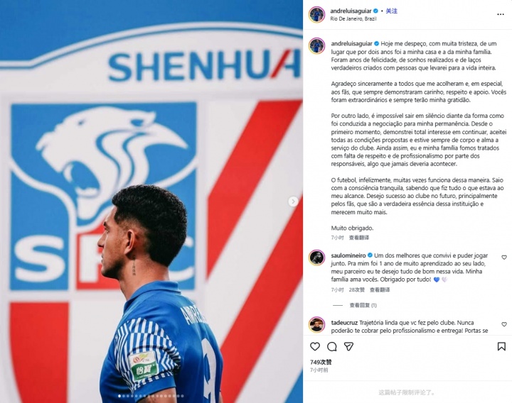 01月02日讯 申花在昨日官宣了5名球员离队,其中外助安德烈·路易斯在个东说念主社媒发文,炮轰申花俱乐部的磋商形态,况兼谴责俱乐部对他相当家东说念主不尊重。
