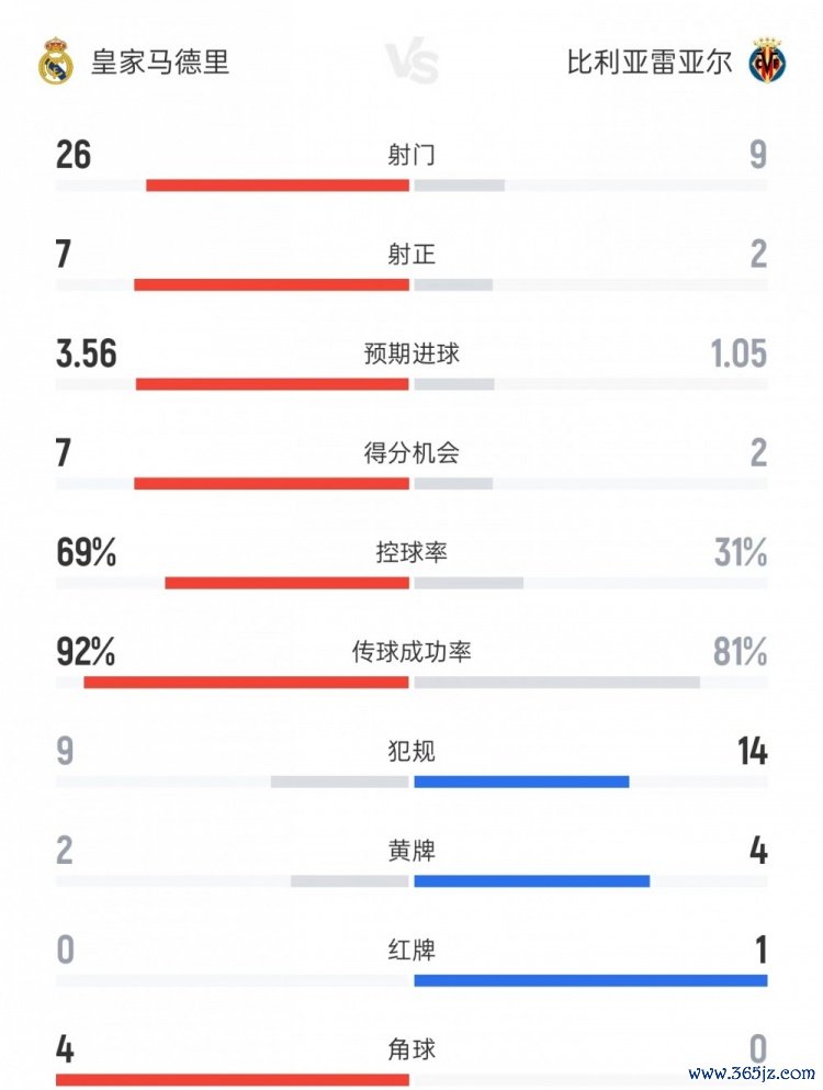 10月5日讯 西甲第8轮比赛,皇马主场3-1打败比利亚雷亚尔。