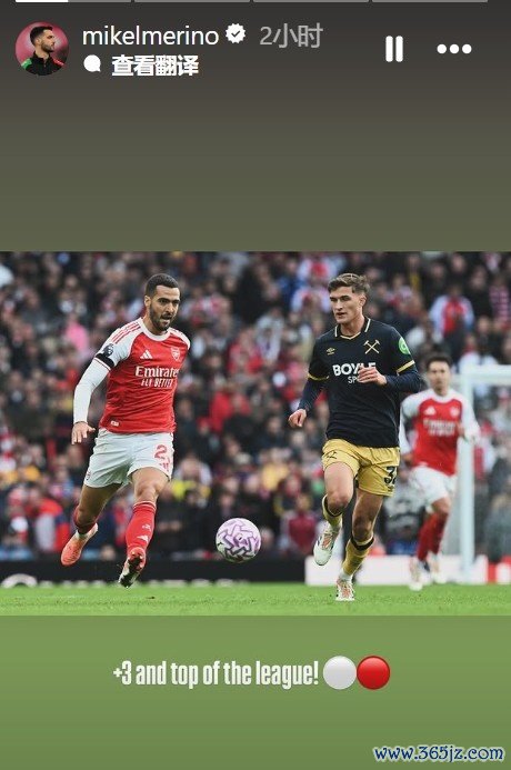 10月5日讯 在阿森纳2-0打败西汉姆联后,梅里诺更新了酬酢媒体。