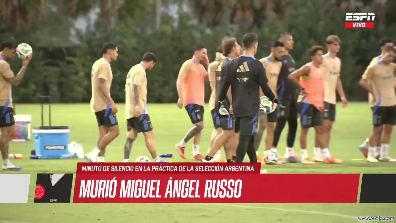 阿根廷队正在迈阿密备战友谊赛,球队在现实场上进行致哀庆典,以吊问逝世的鲁索。