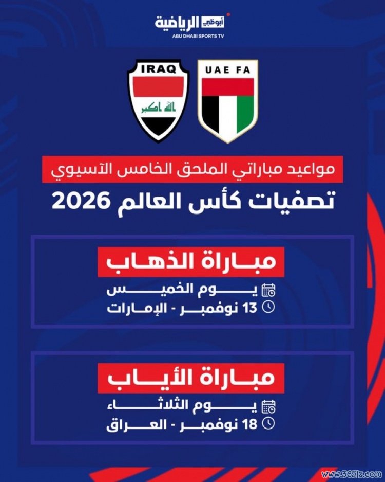 世初赛亚洲区第五阶段,将由阿联酋与伊拉克进行主客两回合较量,胜者将获取洲际附加赛经历。