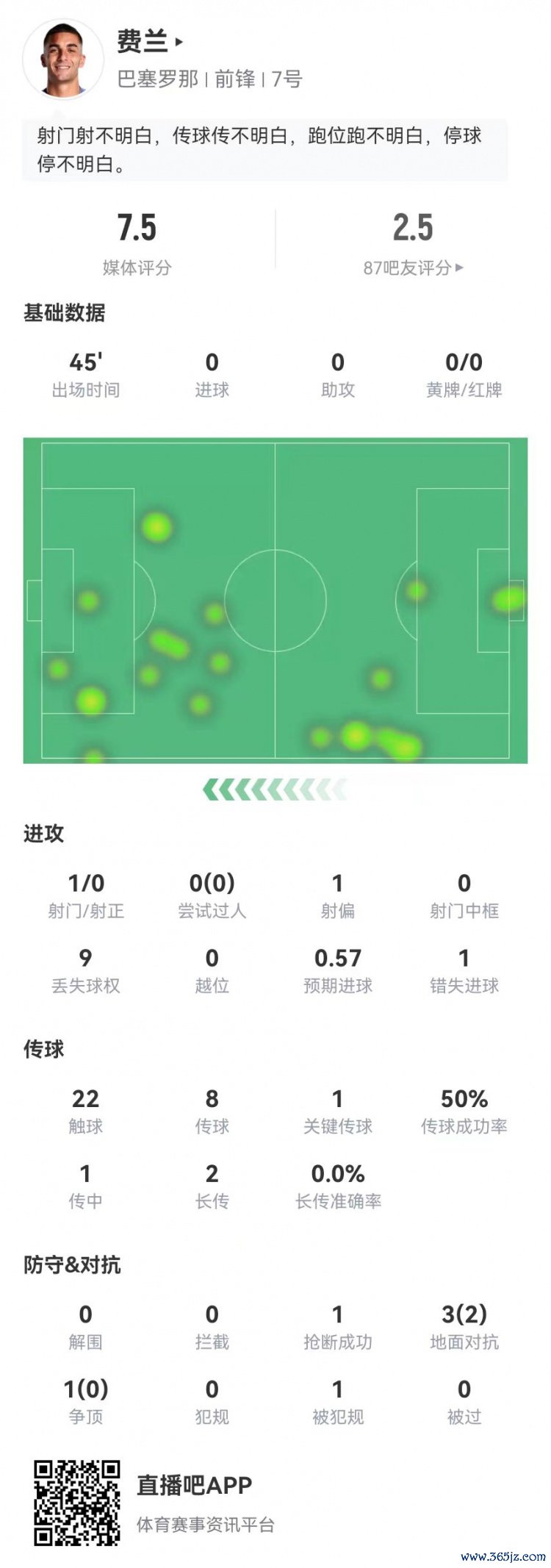 11月26日讯 巴萨在本轮欧冠0-1过期于切尔西,费兰·托雷斯本场数据如下: