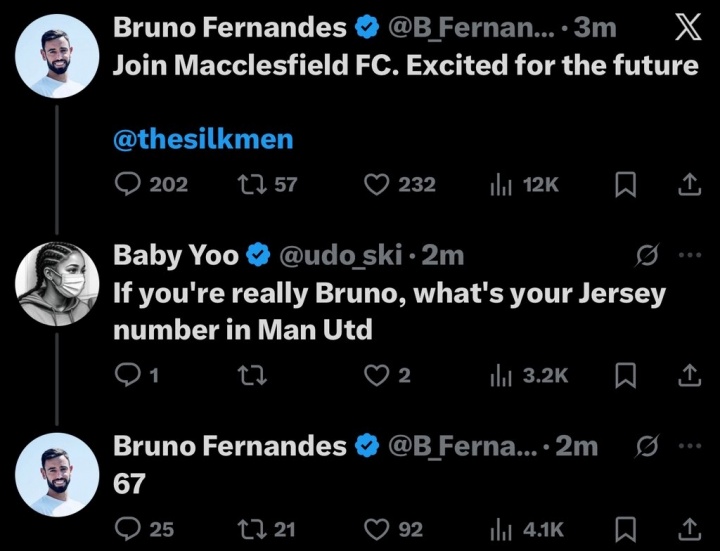 01月12日讯 足总杯第3轮,曼联1-2布莱顿惨遭一轮游。在比赛放胆后的不久,B费的社媒账号遭到黑客盗号,目下仍在握续发布各式仙葩言论。