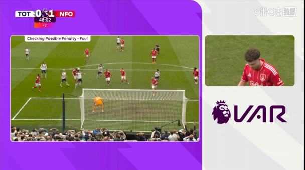 03月22日讯 英超第31轮,热刺vs诺丁汉森林。第一节间歇时间结束前,罗梅罗在对手点球区内倒地,VAR员介入,最后确认没有惩足球点球动作罚射。