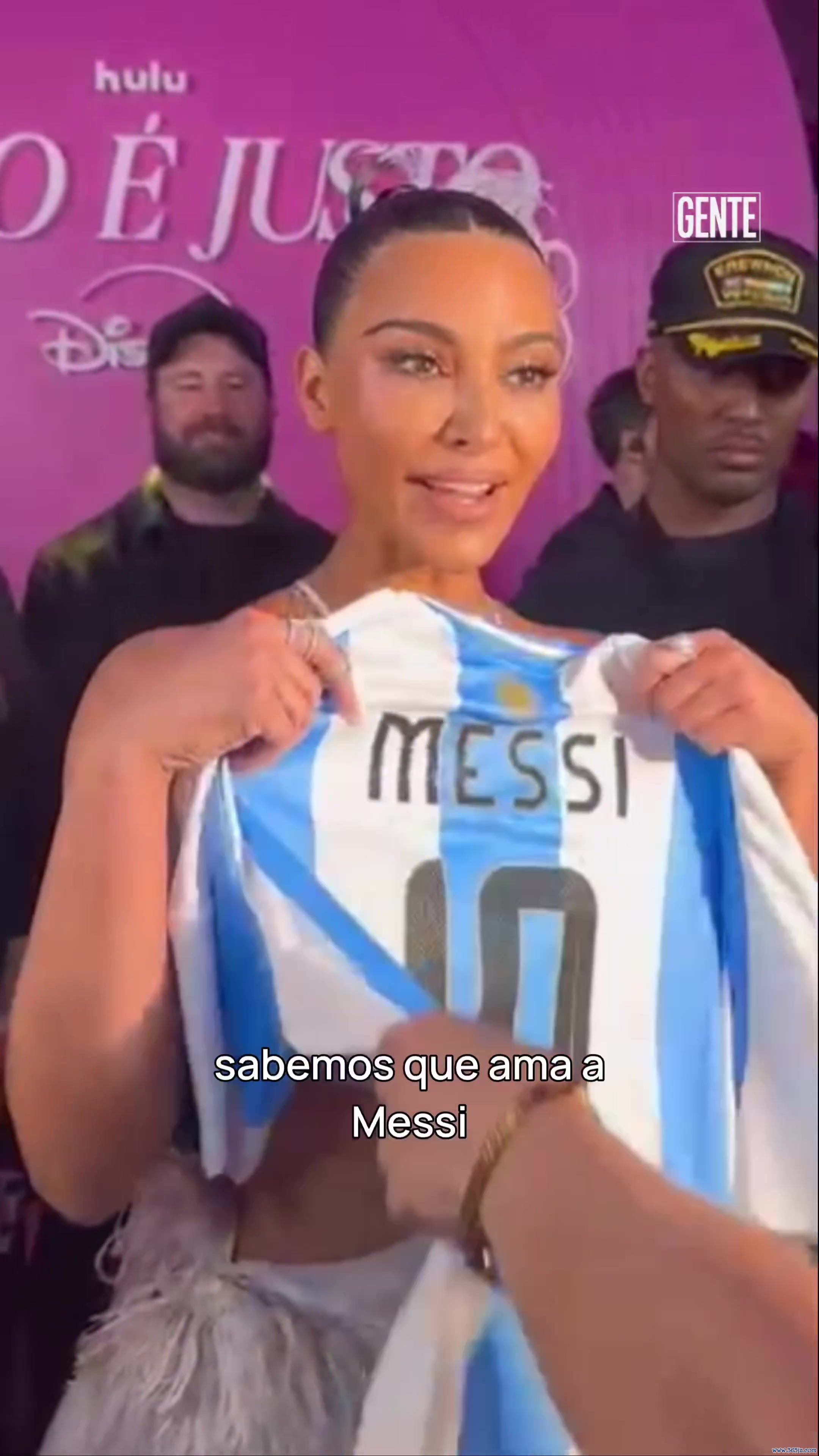 金·卡戴珊来到巴西进入活动,GENTE杂志的记者向金·卡戴珊搭救梅西球衣,手脚给她女儿的礼物,金·卡戴珊默示感谢。