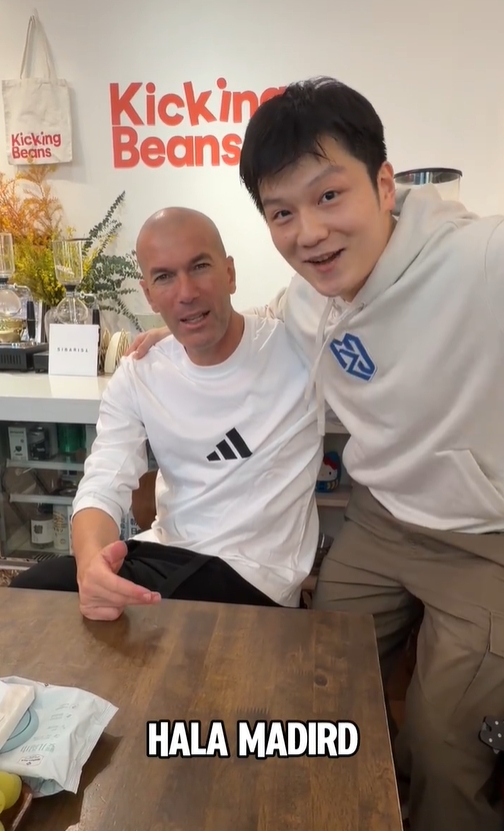 樊振东与都达内用西语说到:“123 Hala Madrid”。