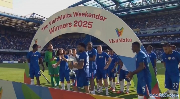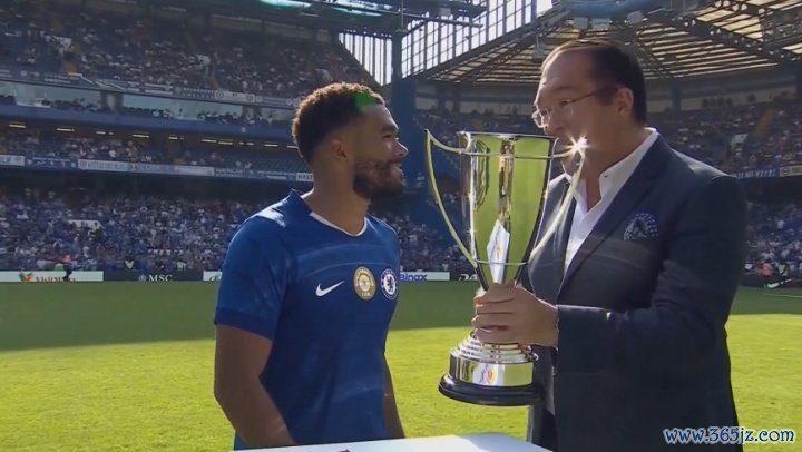 赛后,切尔西队长詹姆斯代表球队领取了季前赛奏效的冠军奖杯。