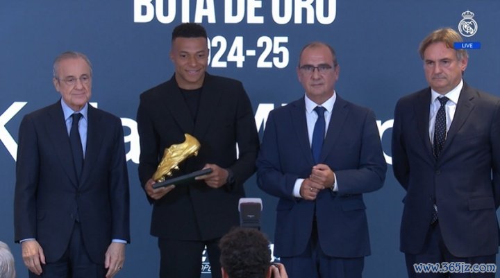 10月31日讯 姆巴佩在伯纳乌球场贵客室领取上赛季的欧洲金靴奖杯。这是姆巴佩生存初次斩获欧洲金靴,亦然乌戈-桑切斯和C罗之后的皇马第三东说念主。