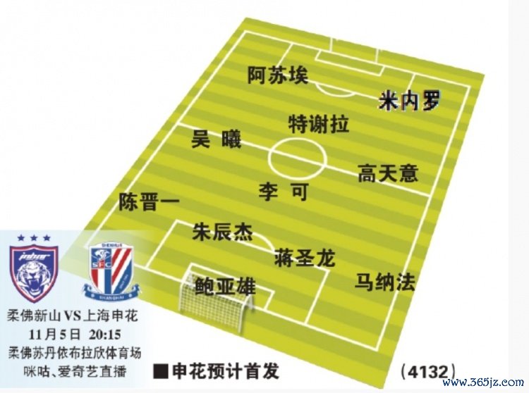 附东体估计申花首发:鲍亚雄;陈晋一、朱辰杰、蒋圣龙、马纳法;李可、吴曦、高天意、特谢拉;阿苏埃、米内罗