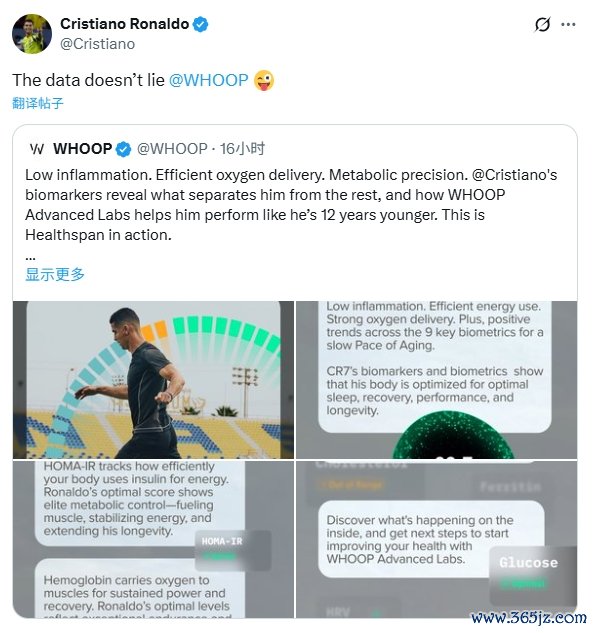 C罗转发并默示:“数据不会说谎@WHOOP😜”
