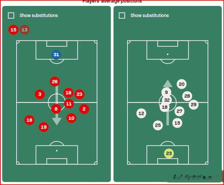 你不错望望比赛的平均站位图,11号的王人尔克泽站位都在中圈位置了,比B费还要靠后,甚而基本在左边路活动,这澄莹是研究到往时几场比赛中场容易穿透,是以用王人尔克泽往复撤重迭中场厚度。