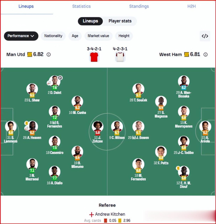 是以,跟上一场2-1打败水晶宫的比赛比较较,曼联用库尼亚代替了芒特、用马兹拉维代替了约罗、用艾登海文代替了德里赫特。其中,阿莫林说库尼亚脸色压力很大,缺少进球是以念念要诠释注解我方,而约罗则是纠合失实,对我方的贯通感到黯然。