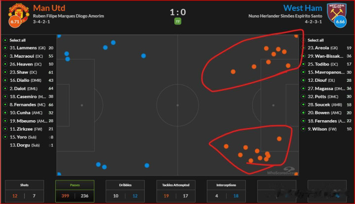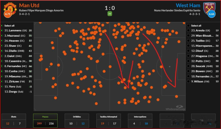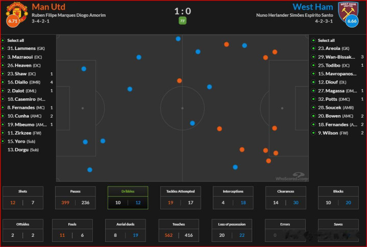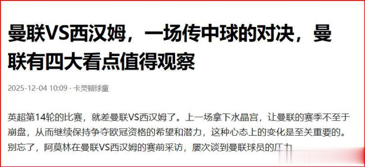 要知谈西汉姆这场比赛11次射门,唯有3次射正,曼联不才半场后半段的限度力,依然存在重大的残障。