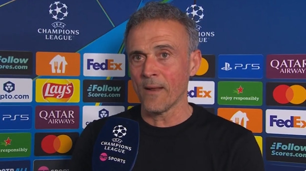 直播吧03月12日讯欧冠1/8决赛首回合,巴黎主场5-2大胜切尔西,赛后巴黎主帅恩里克接受了TNT的采访。