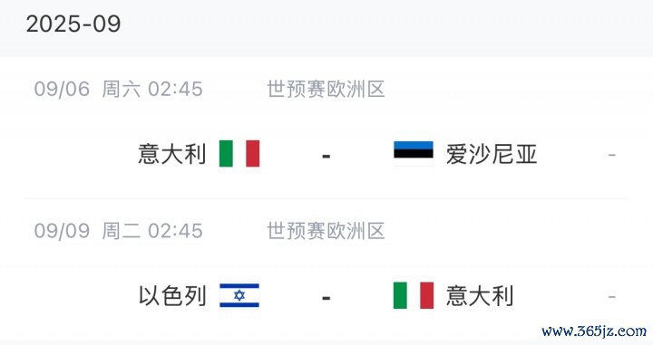意大利9月世初赛将鉴别对阵爱沙尼亚和以色列。