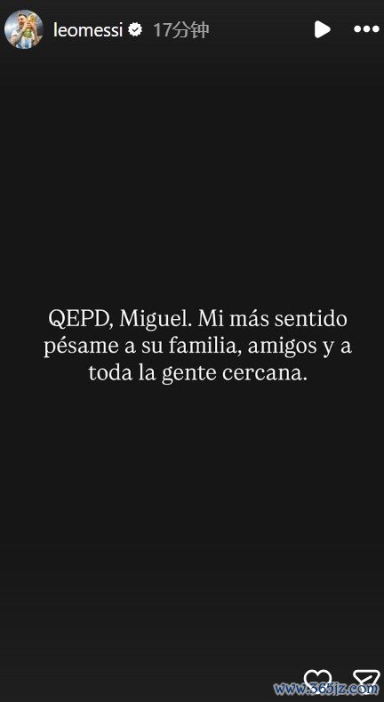 在酬酢媒体上,阿根廷巨星梅西抒发了诋毁之情,他写说念:安息吧,米格尔!我要向他的家东说念主、一又友以及总共亲近的东说念主致以最潜入的诋毁!