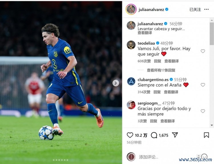 马竞前卫阿尔瓦雷斯此役踢满全场,赛后他在酬酢媒体上晒出比赛像片,配文:“抬开端,不时前进。”