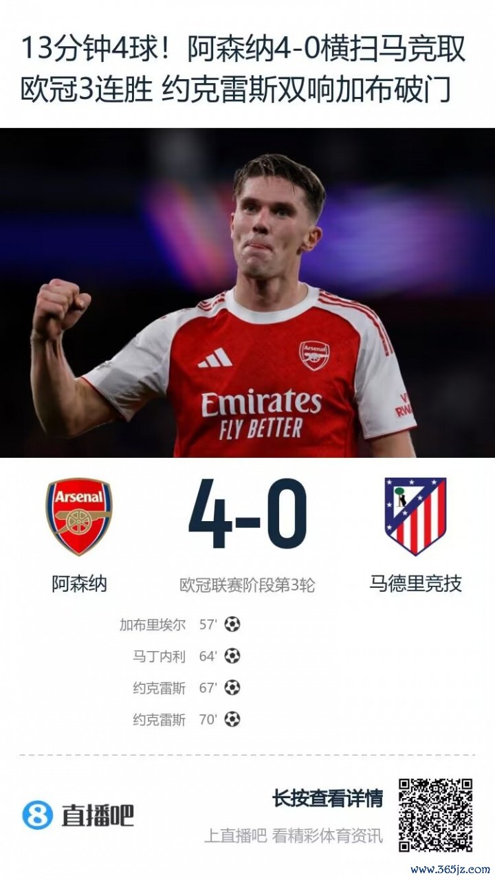 > 马德里之王!阿森纳上赛季总比分5-1双杀皇马,本日4-0大捷马竞