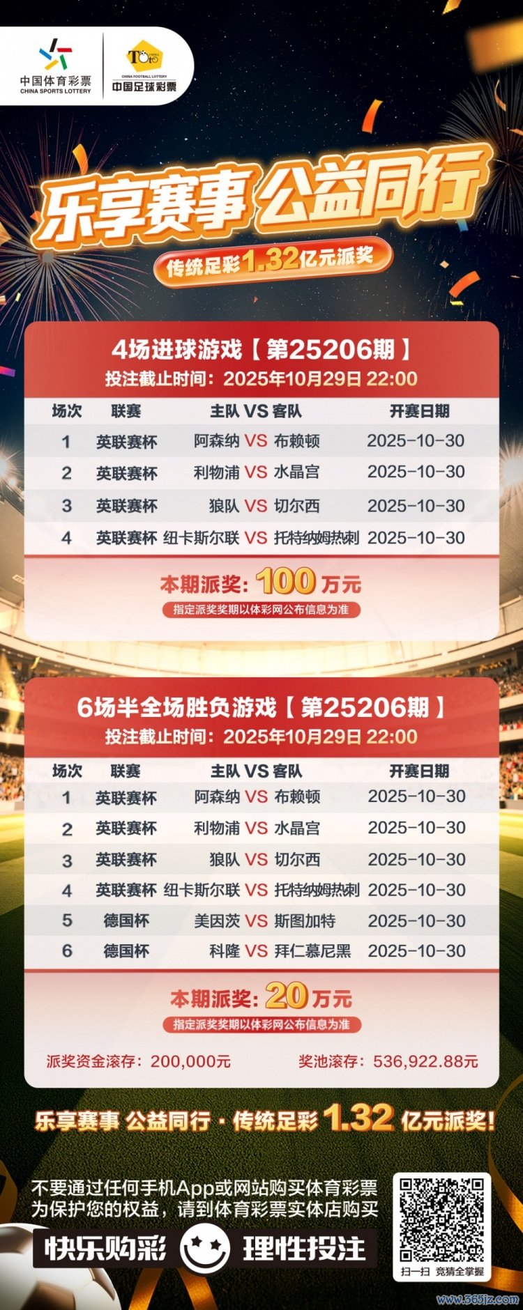 传统足彩派奖四肢火热进行中!6场半全场赢输游戏滚存超70万元!