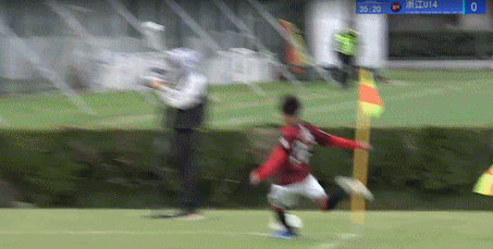 第39分钟,郑哲瀚单刀突入禁区,靠近出击的门将挑射破门,浙江队扳平比分。