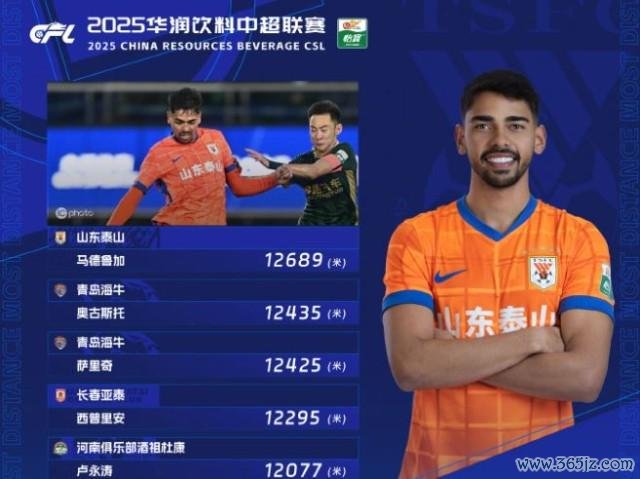 中超联赛官方公布第27轮跑动距离榜。在对阵浙江队的比赛中,山东泰山外助马德鲁加的跑动距离达到12689米,位列榜单第一,这是他本赛季第二次登顶跑动距离排名榜。