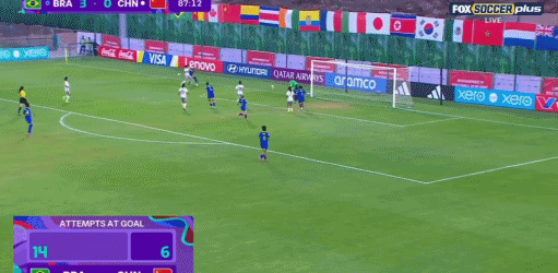 第87分钟,李启娴毒害下底横敲被挡,徐悦跟进头球,被巴西门将扑出底线。