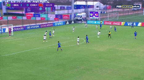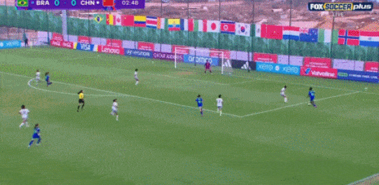 第3分钟,巴西中场送出一脚直传,凯兰右路突入禁区小角度射门平直,巴西U17女足1-0卓绝中国队。