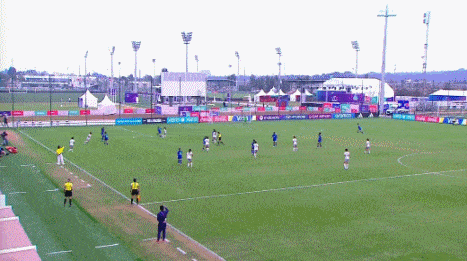 第45分钟,张克璨追防铲球犯规送点并吃到黄牌,玛丽娜主罚点球打偏。