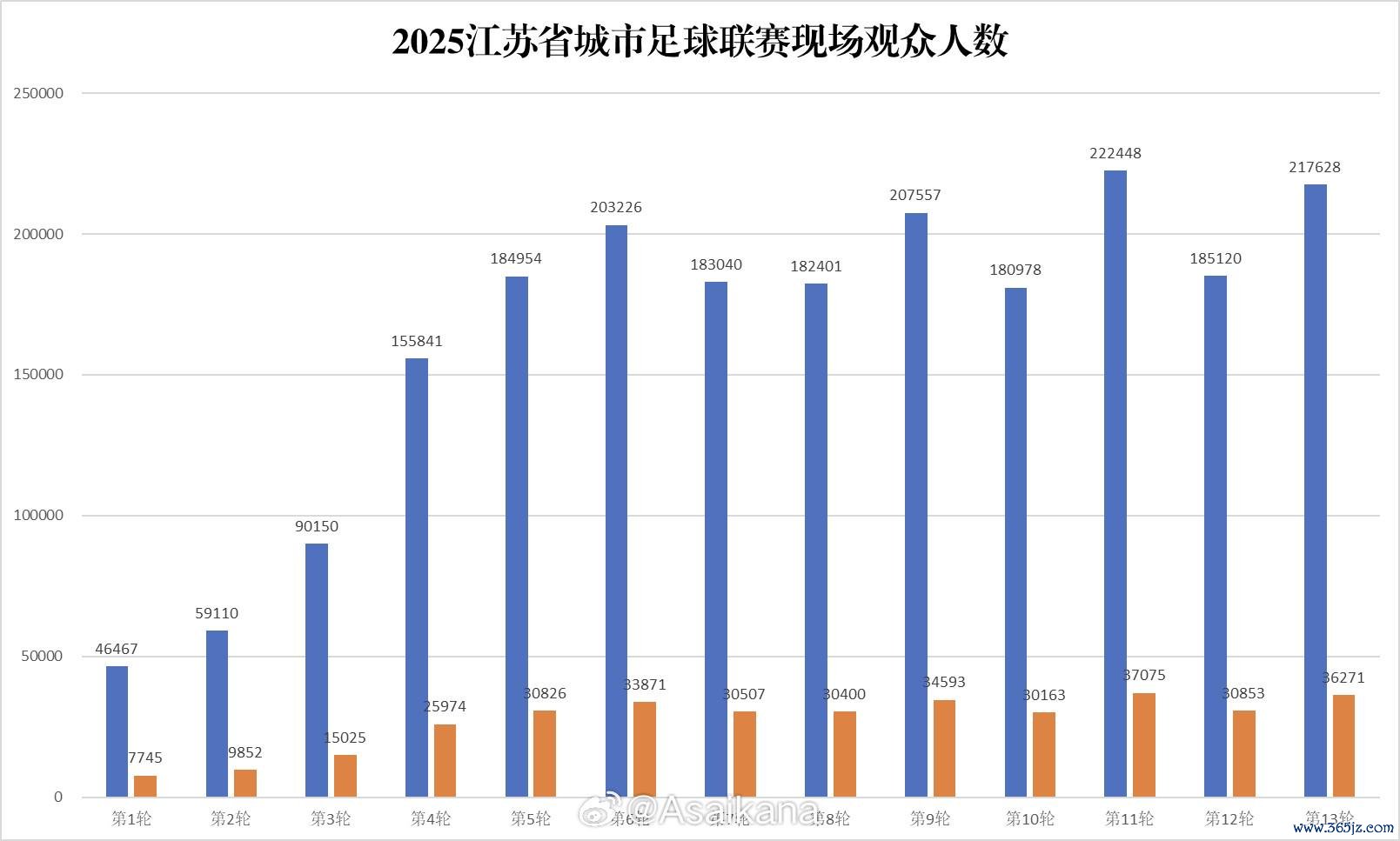 成例赛方面,上座最高的是第十一轮,达222448东说念主次;第二高的是第十三轮,达217628东说念主次;第九轮上座位居第三,达207557东说念主次。